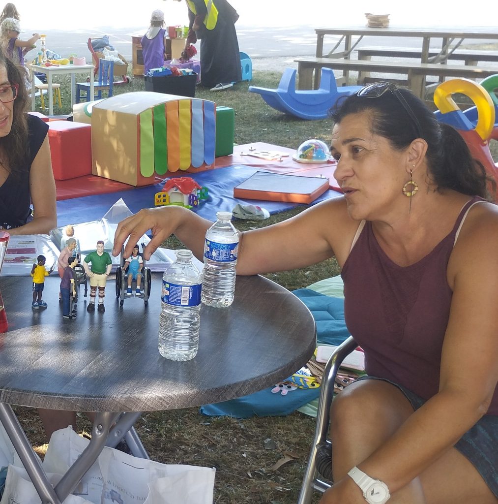 Je me déplace avec mon matériel pour mettre en place les ateliers sensoriels.